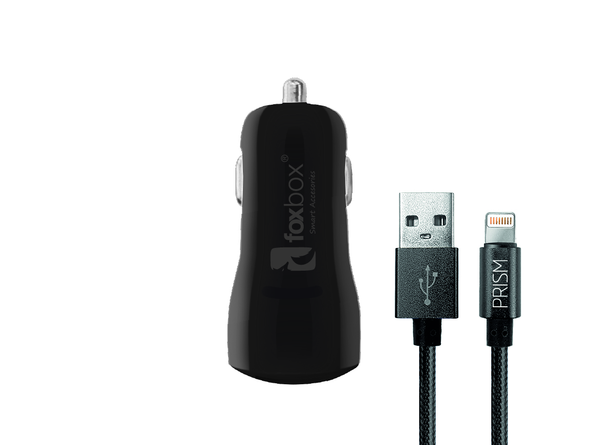 FOXBOX Way Cargador Rapido 3.0A + Cable Lightning para auto - Colores Varios
