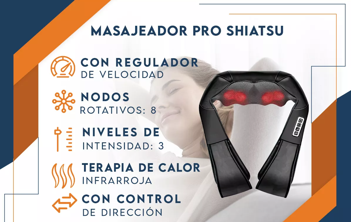 El masajeador cervical con técnica japonesa Shiatsu te permite incorporar fácilmente estos beneficios de bienestar fÃsico a tu rutina diaria.