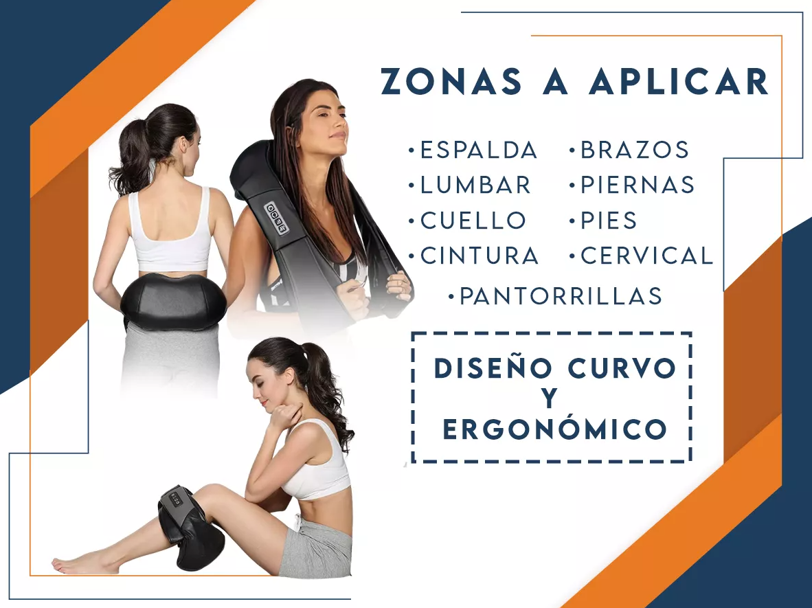 - Diseño curvo que permite adaptación ergonómica para cervical - lumbar - espalda - pies.