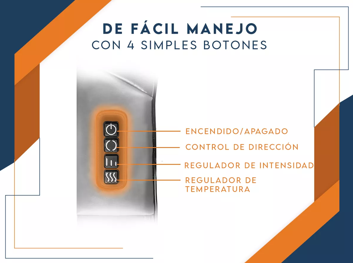 - Regulador de Velocidad para adaptar el masaje a la intensidad que prefieras.